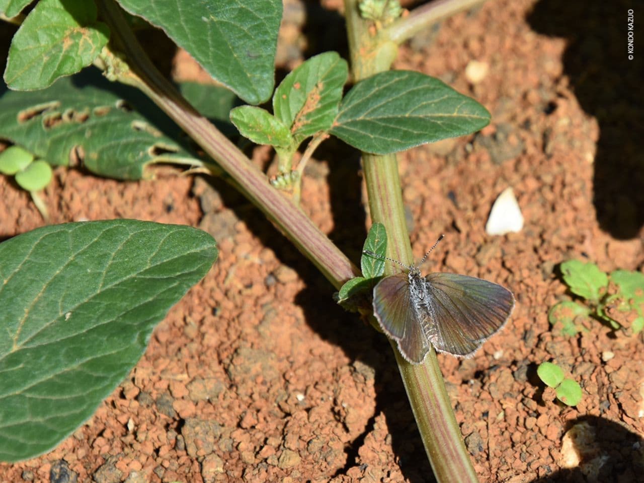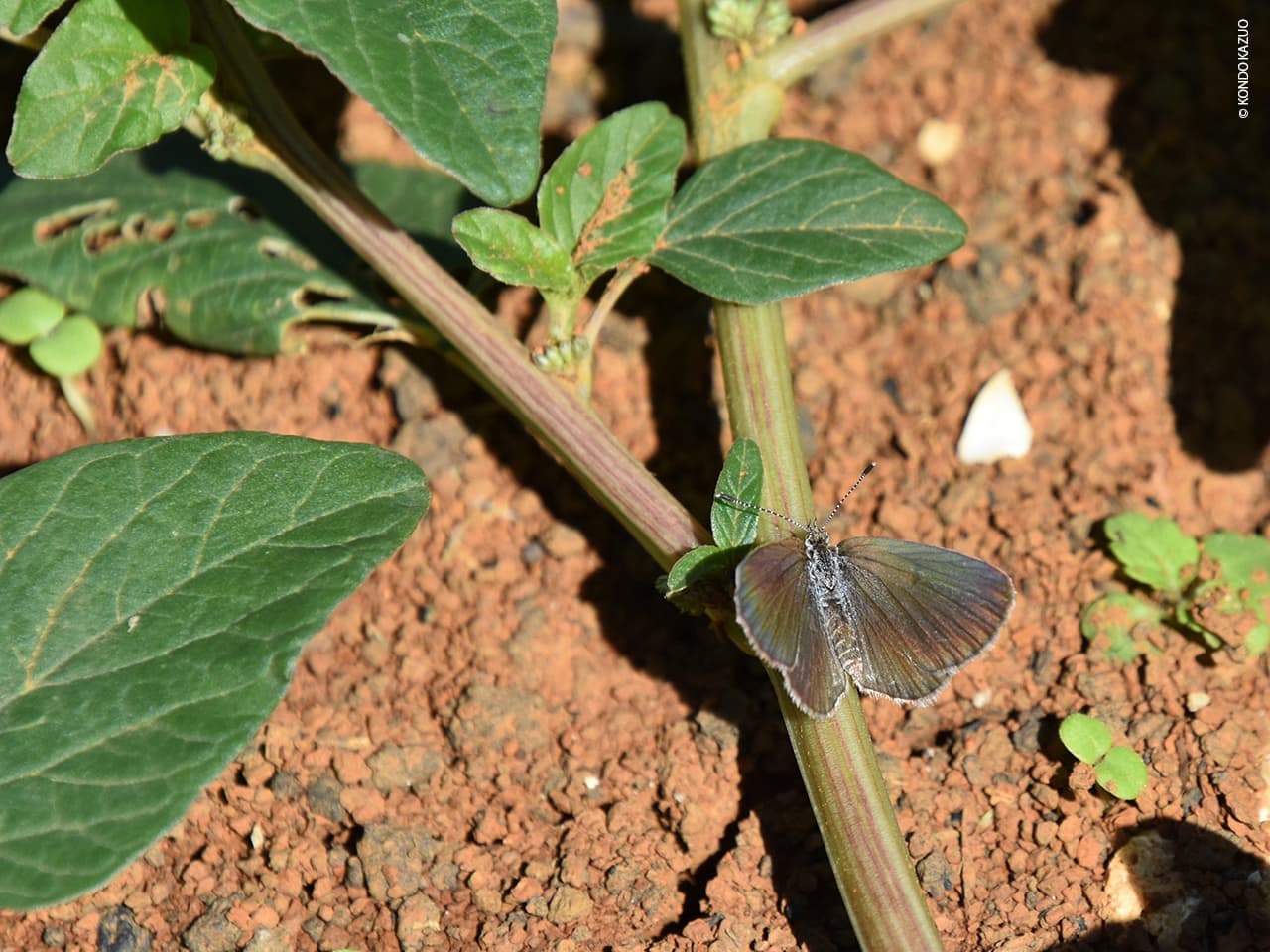 イヌビユの生える粘土質の荒れ地にチラチラ舞っていました。かなり小さく黒っぽく見えます。