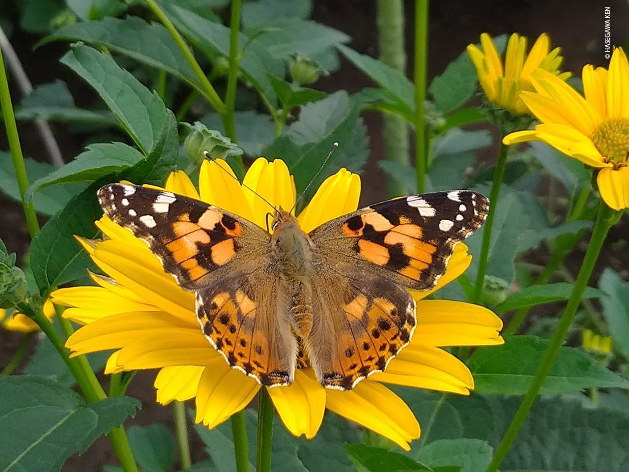 毎日の犬の散歩にスマホを携行し、チョウを見つけると引き紐を踏み押さえ写真を撮ります。